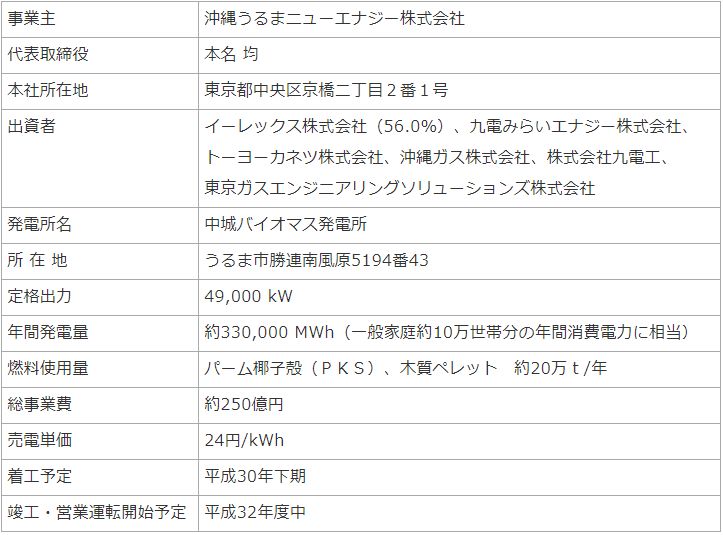 中城バイオマス発電所に関するお知らせ